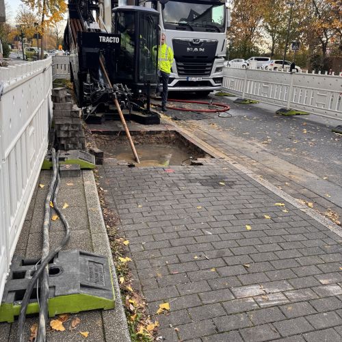 Als Generalunternehmer setzten wir in Essen ein Pilotprojekt zur CO₂-reduzierten Bauweise um. Im Rahmen des Neubaus und der Sanierung mehrerer Leitungsabschnitte übernahmen wir die vollständige Ausführung und Koordinierung der Tief- und Trassenarbeiten.