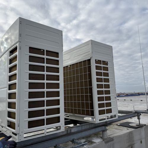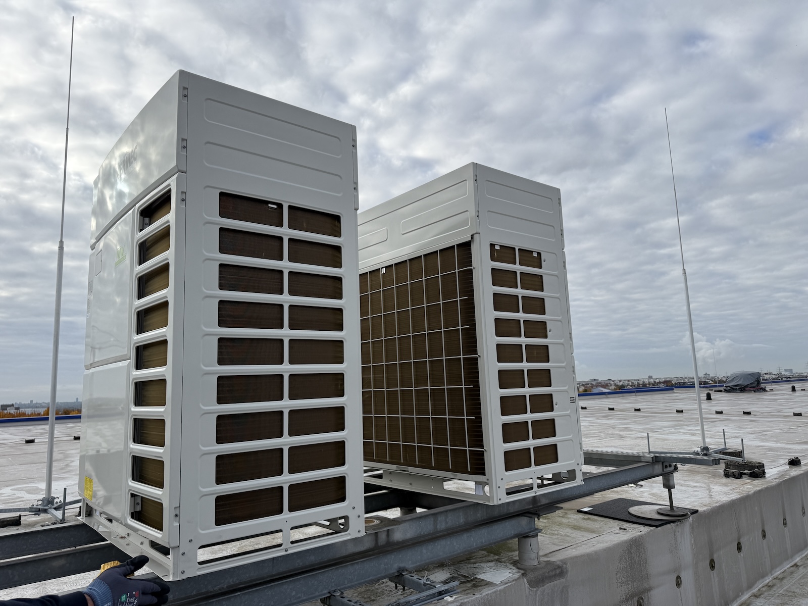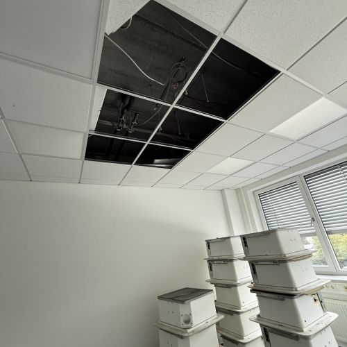 Ein weiterer zentraler Bestandteil des Projekts war die Installation einer neuen, geschossübergreifenden Lüftungsanlage. Dafür demontierten wir zunächst den bestehenden Kaltwassersatz und integrierten anschließend das neue System inklusive aller zugehörigen Leitungs- und Anschlussarbeiten – ohne die laufenden Betriebsprozesse zu beeinträchtigen.