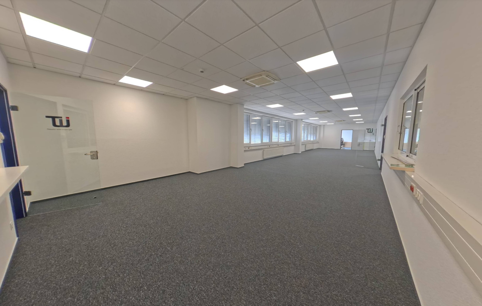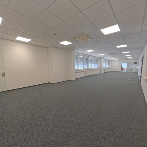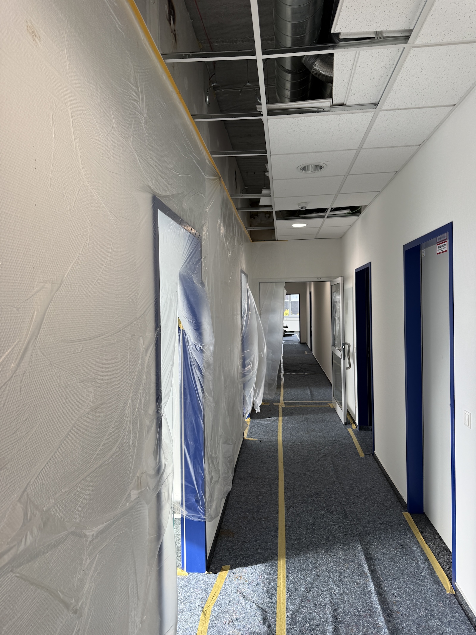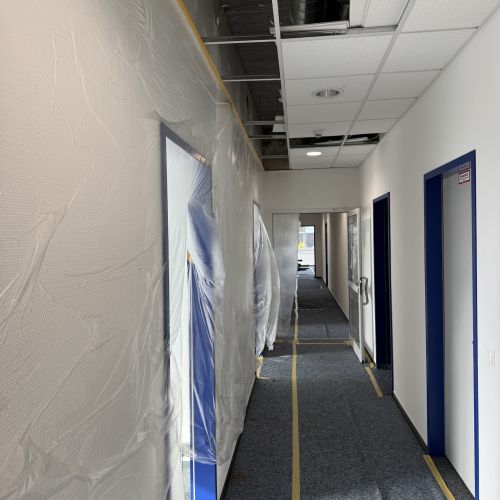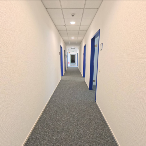 In Frankfurt modernisierten wir in einem zweigeschossigen Bürogebäude im laufenden Betrieb. Zunächst wurde der komplette Bodenbelag beider Etagen vollständig zurückgebaut und durch einen neuen, hochwertigen Belag ersetzt. Parallel dazu erhielten sämtliche Wandflächen eine neue Beschichtung, wodurch ein modernes und einheitliches Erscheinungsbild entstand.