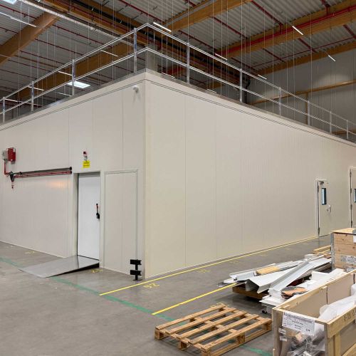 Die besondere Herausforderung: Der laufende Logistik- und Produktionsbetrieb musste während der gesamten Bauphase ohne Einschränkungen weiterlaufen. Trotz enger Platzverhältnisse entstand ein vollständig neuer Baukörper im Inneren der Halle, während der Warenverkehr ununterbrochen aufrechterhalten wurde.