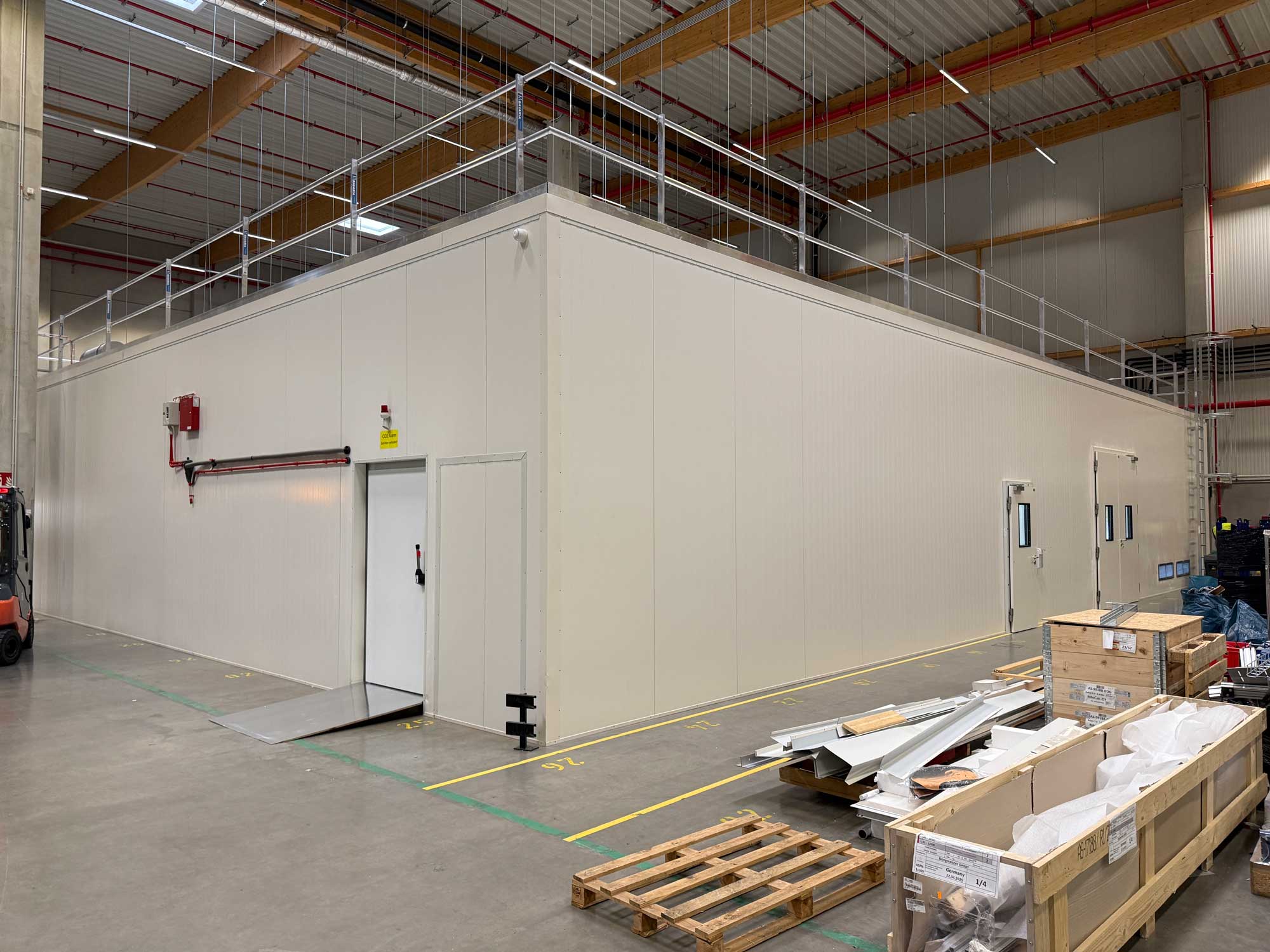 Der permanente Gabelstaplerverkehr und die begrenzten Bewegungsflächen verlangten eine höchst präzise Bauablaufplanung sowie eine enge Abstimmung zwischen Logistik, Arbeitssicherheit und allen Gewerken. Durch effiziente Koordination vor Ort konnte das Projekt termingerecht, sicher und erfolgreich umgesetzt werden.