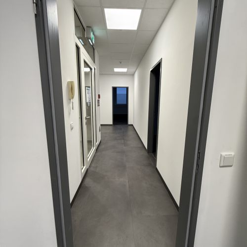 Ein komplettes Bürogeschoss wurde im Rohbauzustand ausgebaut – mit neuer Elektroinstallation, moderner Jalousiesteuerung und dem Austausch der Heizungsanlage. Zusätzlich modernisierten wir die gesamte Sanitärtechnik beider Gebäude. Zwei durch Wasserschäden betroffene WC-Bereiche wurden vollständig entkernt und hochwertig neu aufgebaut.