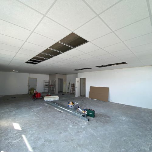In Alzenau modernisierten wir zwei Gewerbeobjekte, jeweils bestehend aus einem dreigeschossigen Bürogebäude und einer Industriehalle. Im Rahmen der Sanierungsmaßnahmen erneuerten wir sämtliche Bodenbeläge und Wandflächen, führten einen vollständigen E-Check durch und überarbeiteten die Hallenbereiche inklusive fachgerechter Risssanierung.